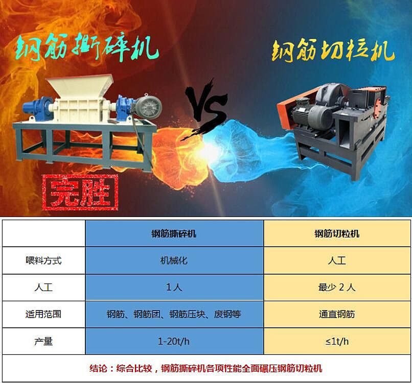 廢舊鋼筋上撕碎機和鋼筋切粒機性能對比: